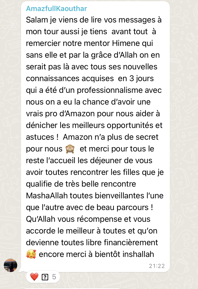 ✅ D’accompagner d’autres femmes comme moi à lancer leur boutique Amazon FBA